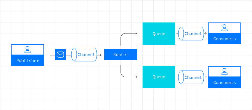 В более сложных архитектурах, когда очередей несколько (например, в больших распределенных системах), между компонентом-источником и очередью также добавляется роутер, который обрабатывает сообщения и распределяет их по нужным очередям.
