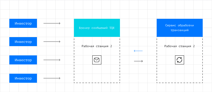 При этом на уровне архитектуры сервис электронных торгов с Tarantool Queue Enterprise может работать следующим образом: