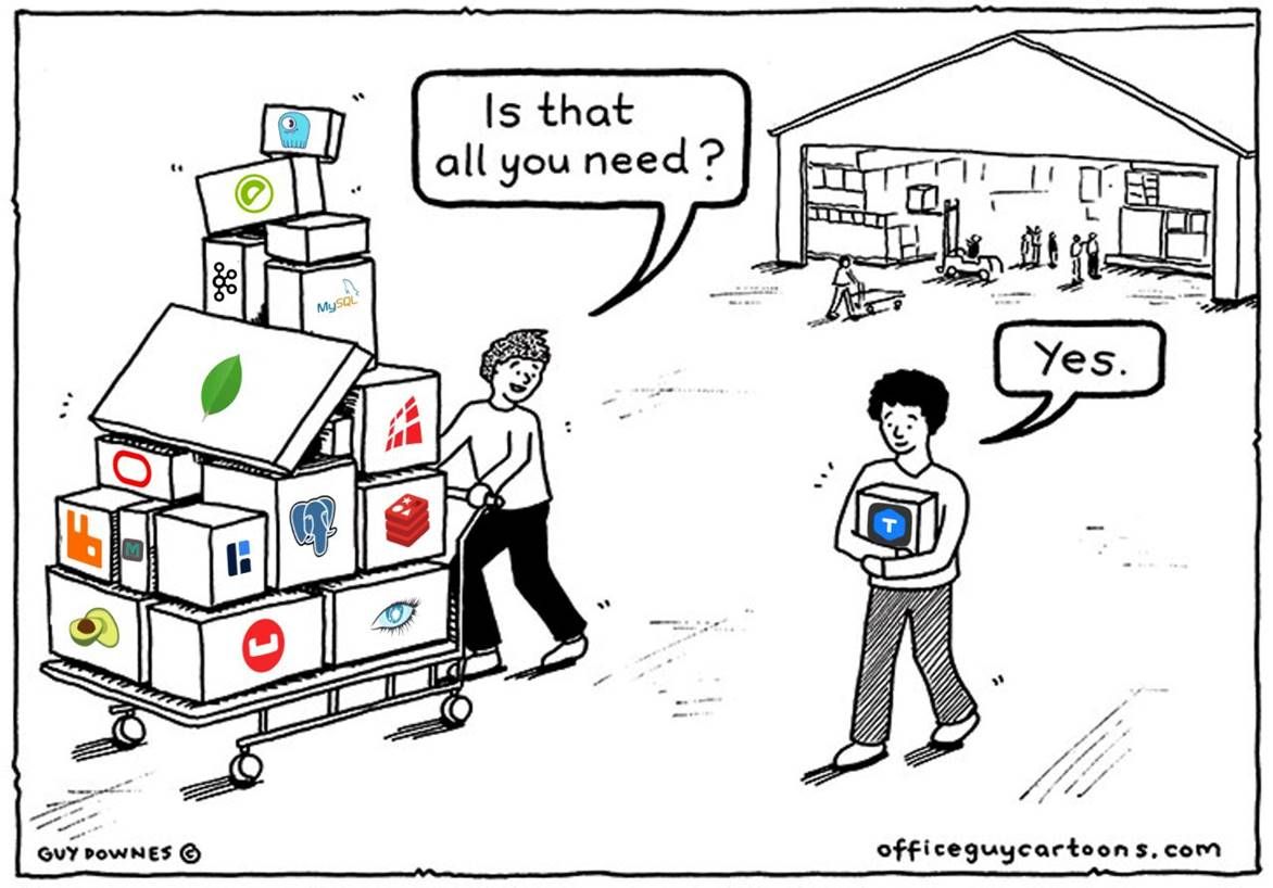 В 2016 году мы презентовали Tarantool в качестве коммерческого продукта. К тому моменту инструмент позволял оптимизировать инфраструктуру хранилищ и снижать расходы на ИТ. В отдельных кейсах с его помощью можно было заменить до 30 серверов с классической СУБД. Например, Tarantool мог заменить сложную гетерогенную систему из SQL СУБД, кэша и NoSQL СУБД.