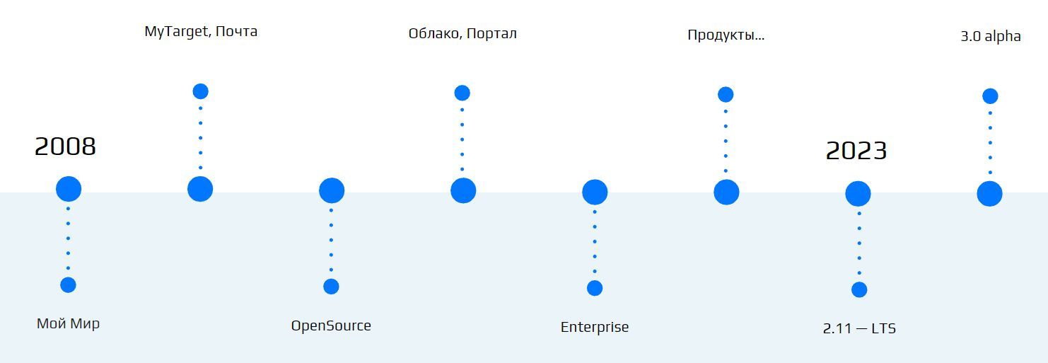 В 2009 году Tarantool был интегрирован в Почту и MyTarget, стал постепенно внедряться в ИТ-ландшафт Mail.ru. Уже тогда мы на практике убедились в универсальности инструмента.
