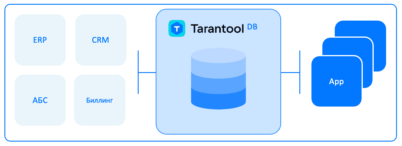 Tarantool — это промежуточное ПО для работы с данными, «под капотом» которого находится резидентная (in-memory) NoSQL база данных. Она хранит данные в оперативной памяти для быстрого доступа, но также поддерживает их сохранение на диск.
